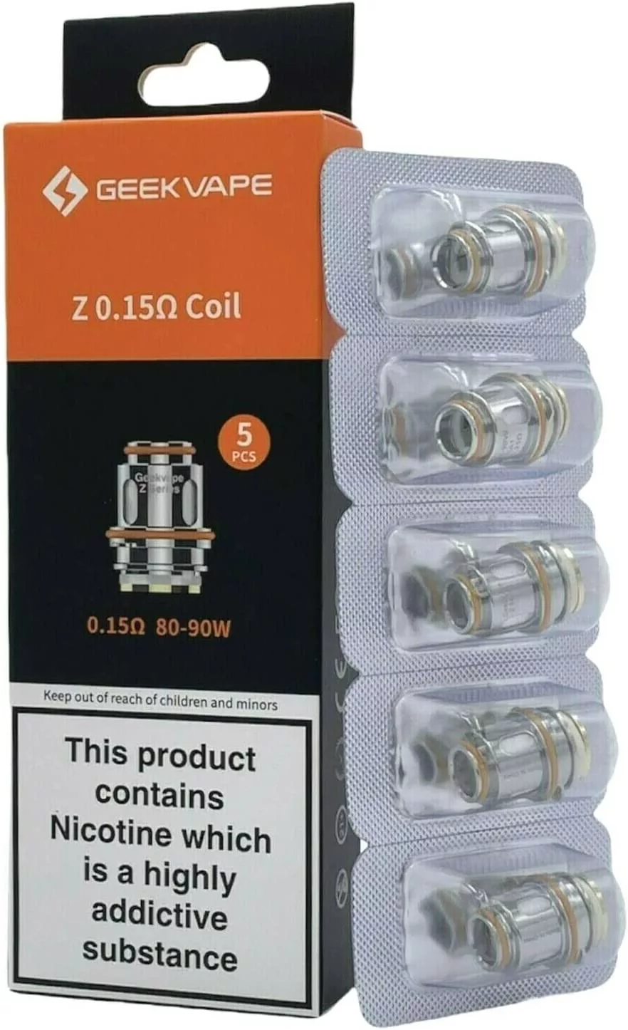The GEEKVAPE Z Series Coils are specifically designed replacement coils with a resistance of 0.15 ohms, featuring a mesh coil build. These coils are optimized for a power range between 80 to 90 watts, ensuring an ideal performance within this wattage range. The mesh build enhances the heating surface, providing a more uniform and efficient vaporization of e-liquids, resulting in enhanced flavor and vapor production. Ideal for vapers looking for a balance between wattage, flavor, and vapor output, these replacement coils are compatible with devices supporting their specified wattage range.